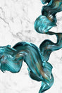 Otherworldly movement is balanced with dramatic form in Celestial Cascade Abstract Wall Art, a colorful visual composition that is equal parts energy and elegance. Turquoise, copper, and smoky charcoal ribbons wrap around a radiant white marble background to create the sense of fluid movement suspended in space.
